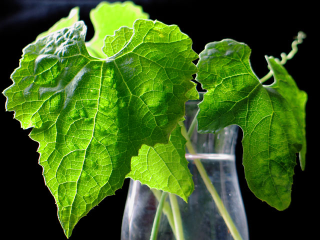 カラスウリの葉の表面には細かい毛が密生していて、