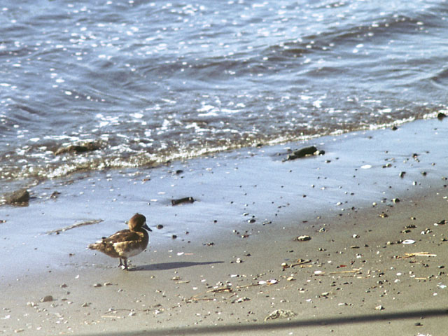 弁天橋を渡っていたらスズガモの雌がたたずんでいました。