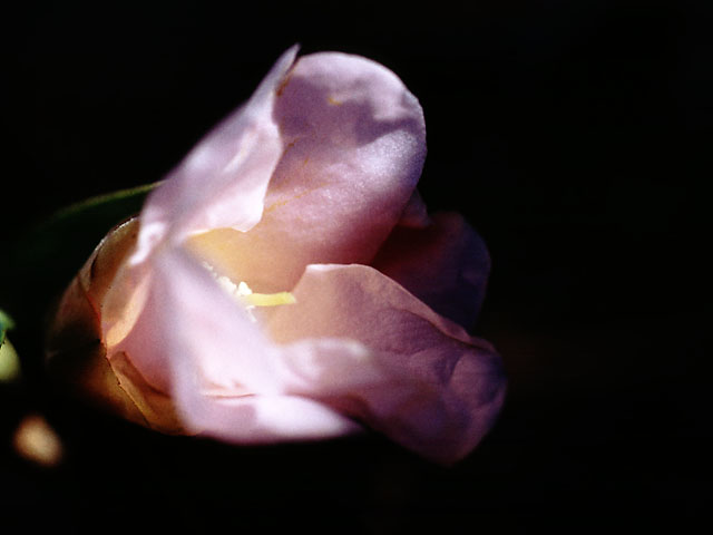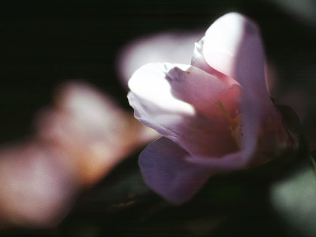 透明感のある涼やかな薄紅色と中折れの弁でおしゃれな椿です。