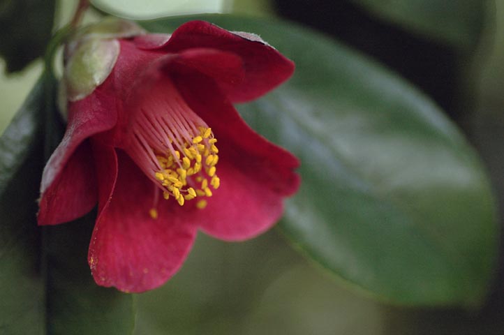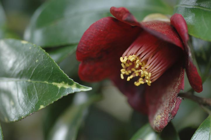 漏斗咲きのためか侘助と名にありますが、ヤブツバキ系です。