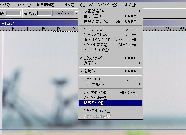 ビュー→新規ガイドでガイドを表示させます。