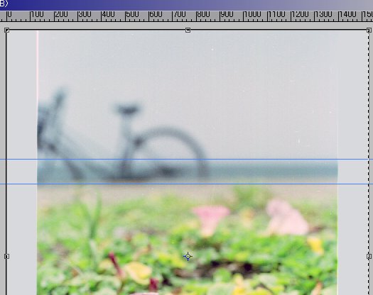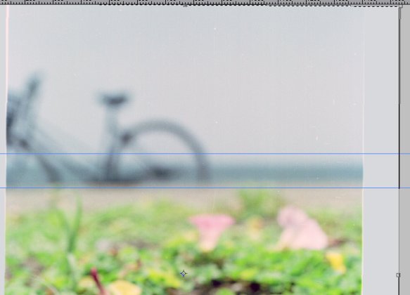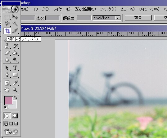 フィルムの縁が写りこんでいるので、スタンプツールで消します。