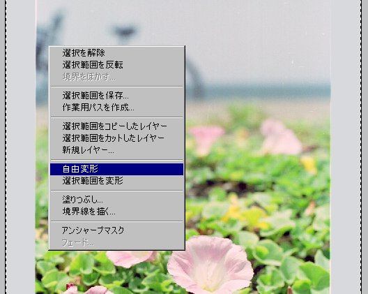 右クリックして自由変形を選びます。