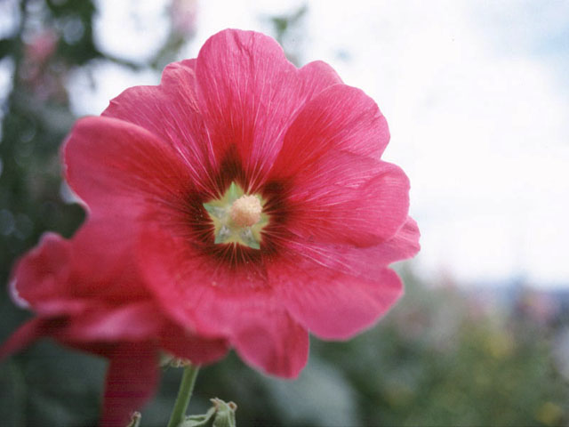 タチアオイは5月頃花茎の下側から咲き初めて一番上まで咲き終わると再び下から二番咲きが始まるのでとても花期が長いです。