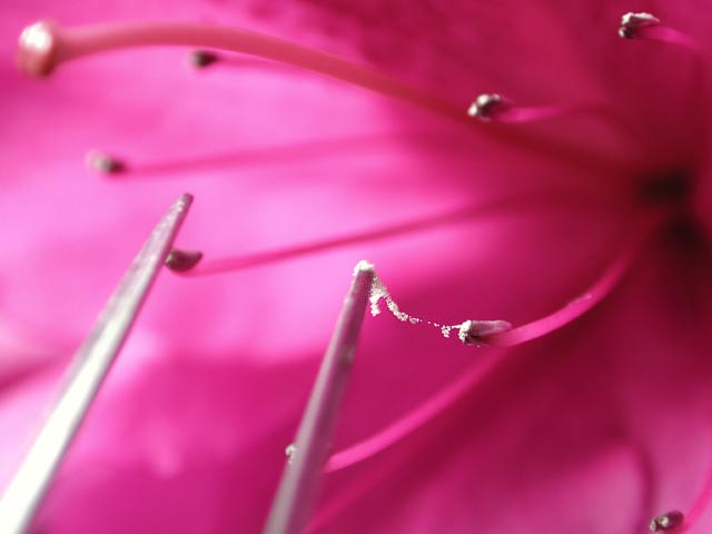 花粉が溢れ出している雄しべをねらうのがコツです。