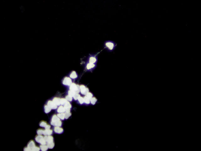 拡大すると花粉が細い糸で繋がっているのが見えます。