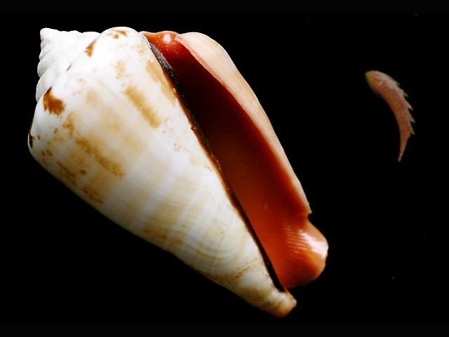 これは、生きた貝を手でつかむと、尖った蓋(画像の右に写っているもの)を振り回して逃げようとする性質によります。