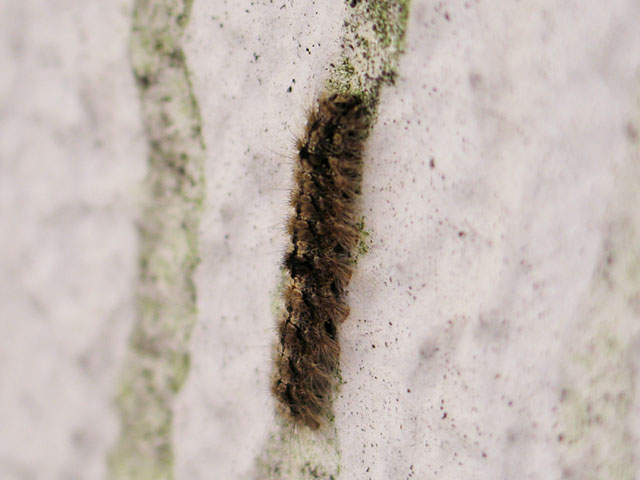 コンクリート製のU字溝の壁面に小さな黒っぽい毛虫が所々張り付いていました。