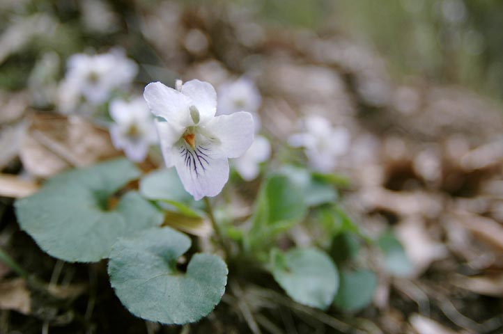 花茎が低く、花の向きが不揃いで写真に撮りにくいスミレです。