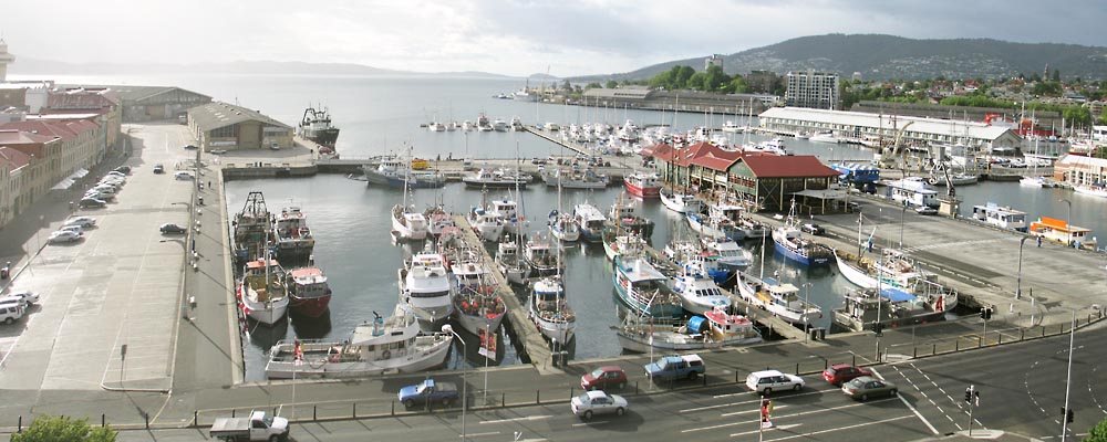 ホテルから見たホバート港です。2枚の画像を張り合わせてあります。