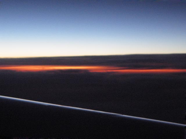 メルボルンを午前中に発って、夕刻そろそろ日本上空に差し掛かった頃です。