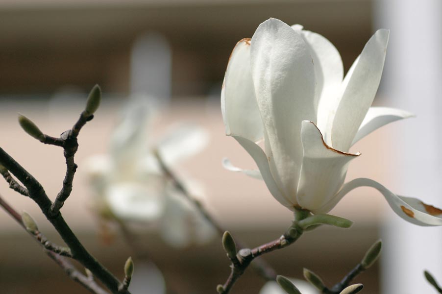 ハクモクレンは中国原産の植物で、咲いている物は基本的に人の手で植えられた物です。