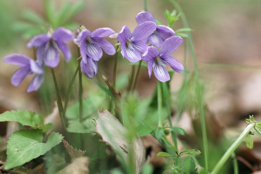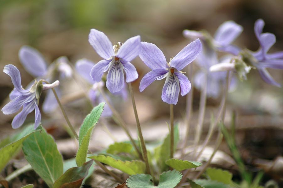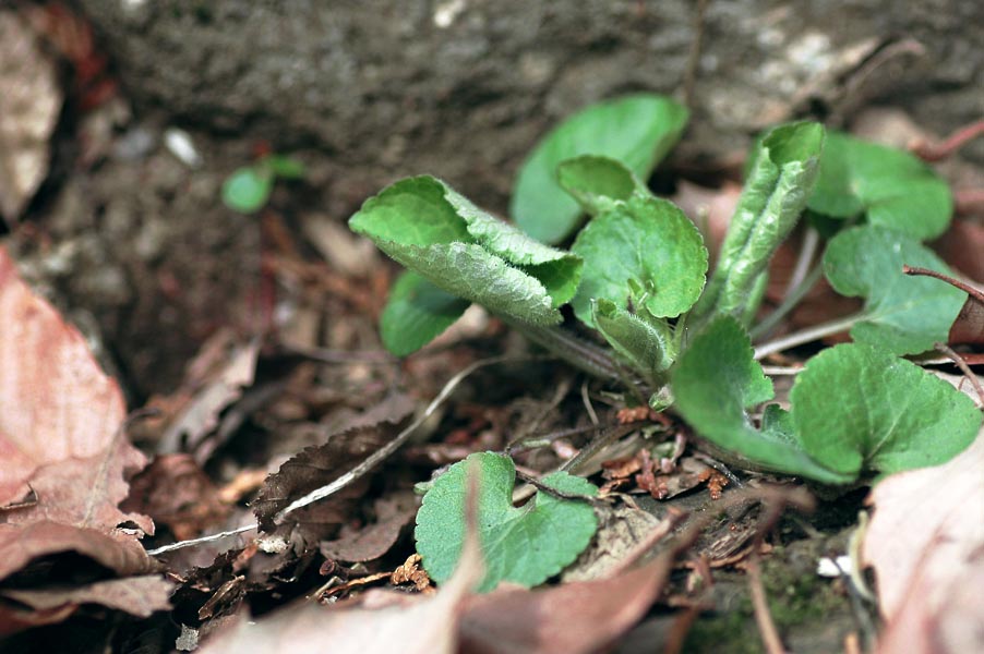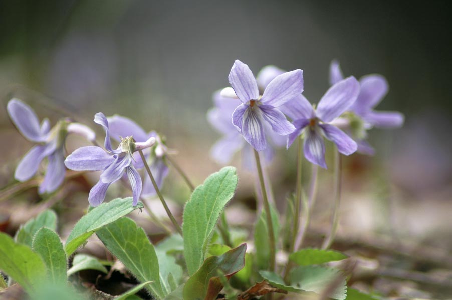 葉は長卵形でつやが無く、他のスミレ類に比べると薄い色のような印象です。