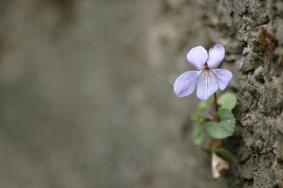 途中、側溝にタチツボスミレがしがみついているのを発見。