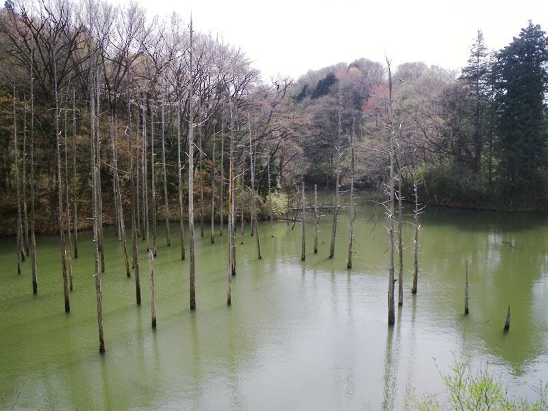 この森は太田川の水源で、川の水量調整のために人工の池が作られています。