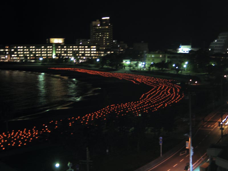 夜になってふと窓から浜を眺めると、