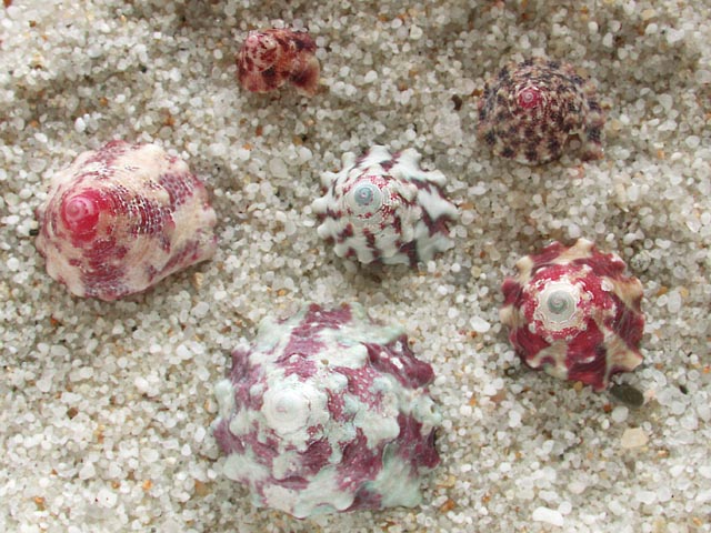 ハナビラダカラ、ハツユキダカラ、ヤクシマダカラ(中央)、コモンダカラ、カノコダカラ(右上)、