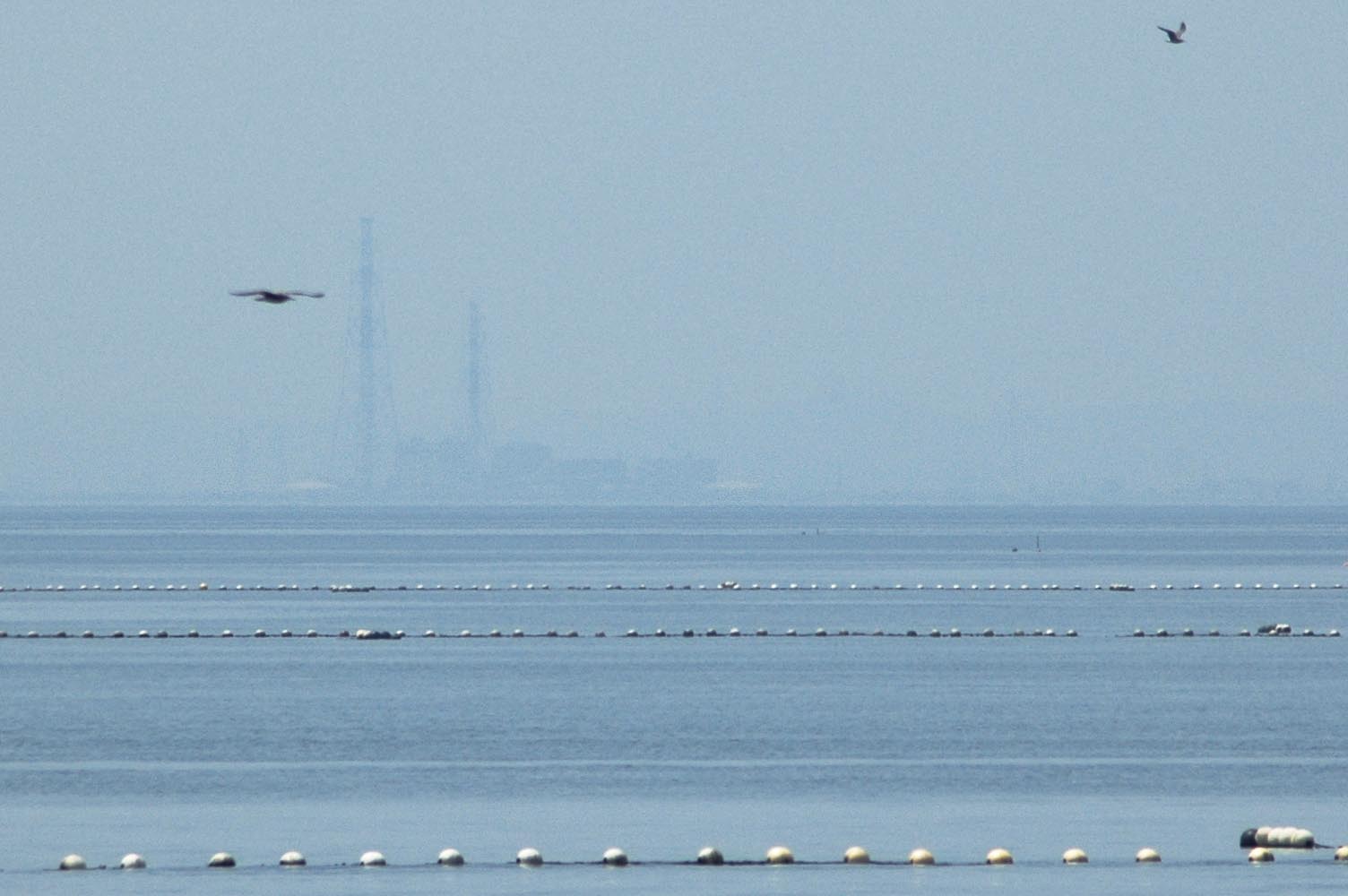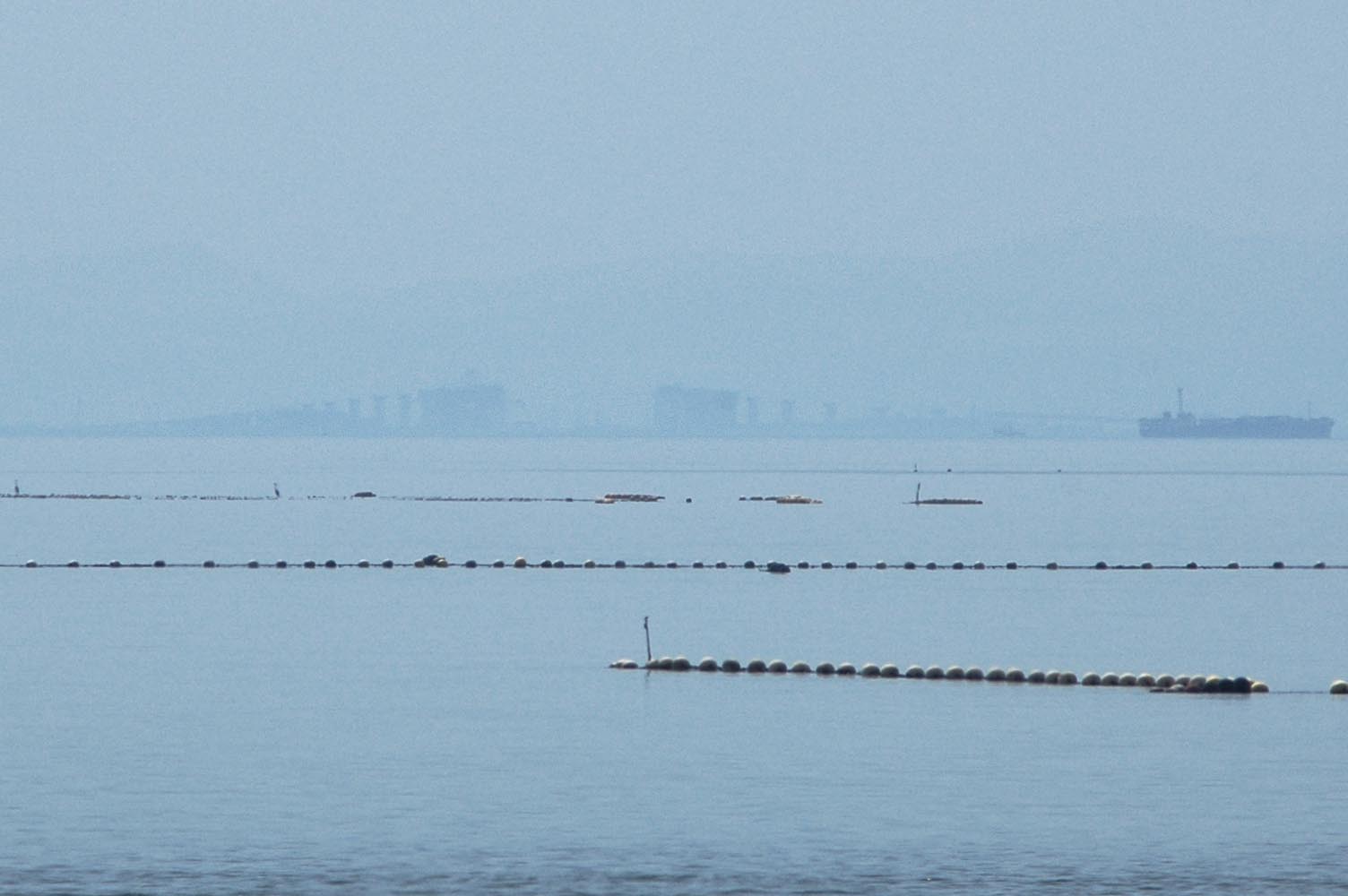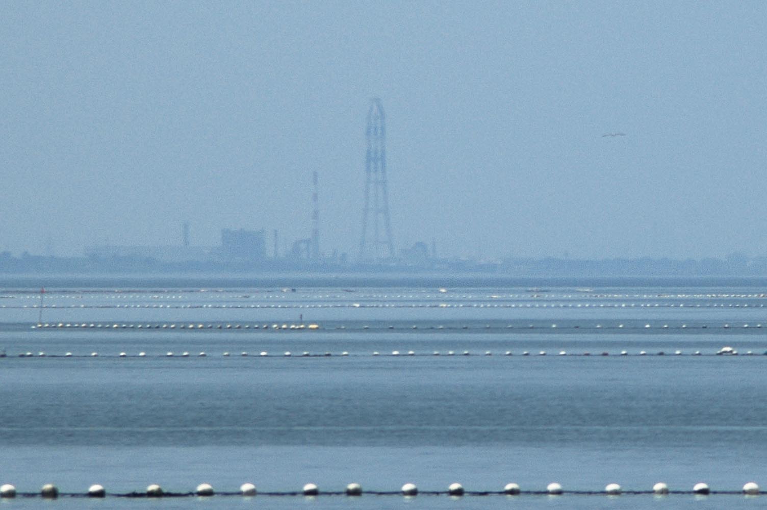 奥の方の海面が一段浮き上がっているような・・・