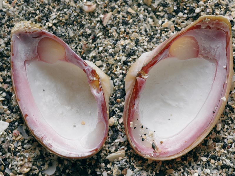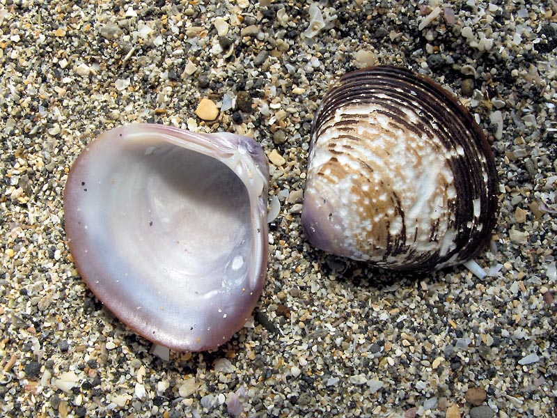 殻はかなり硬質で、左右の大きさが異なっているため、