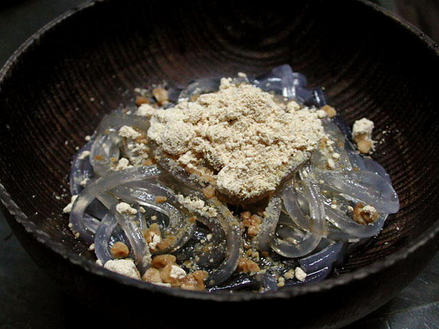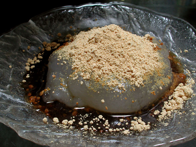くず餅というと灰色でクニュッという割合しっかりした食感のを思い浮かべるのですが、