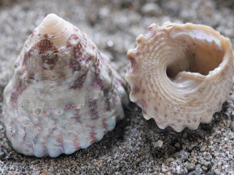 サザエに近い仲間で、石灰質の厚い蓋を持ちます。