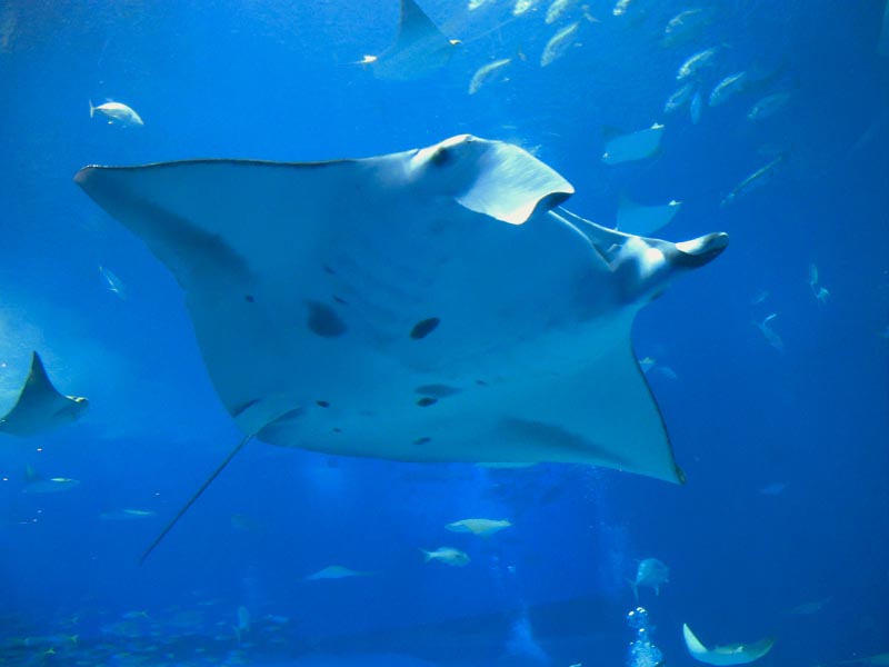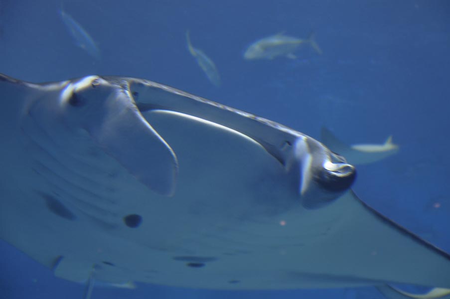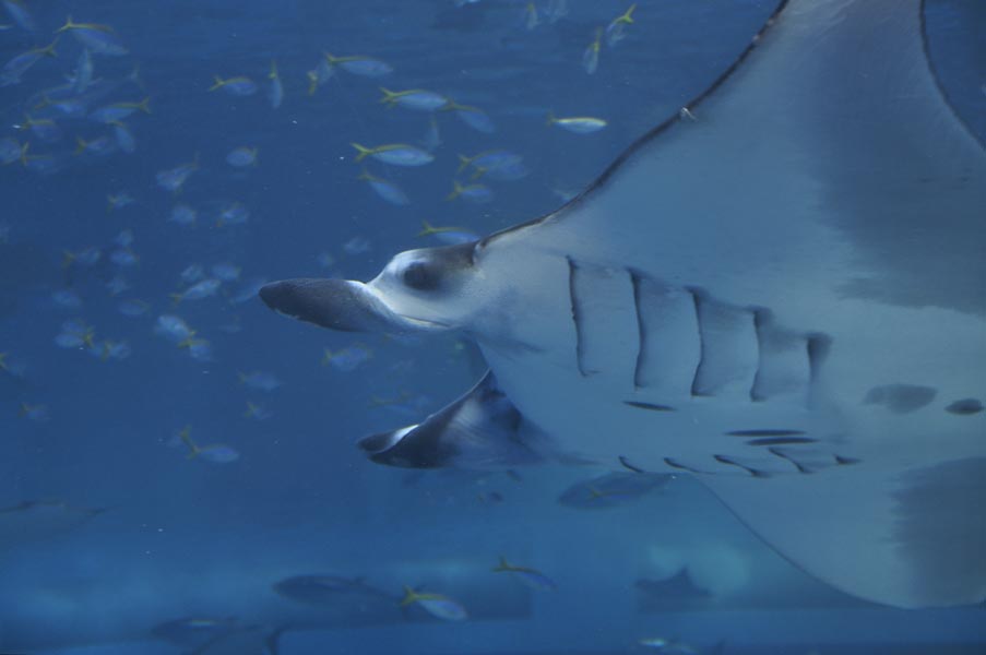 ジンベエザメやマンタのいる大水槽の側面はドーム状になっていて、