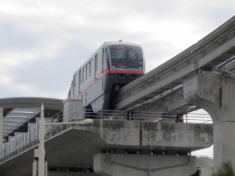 ゆいレールは幹線道路や河川の上を縫うように走っていて、