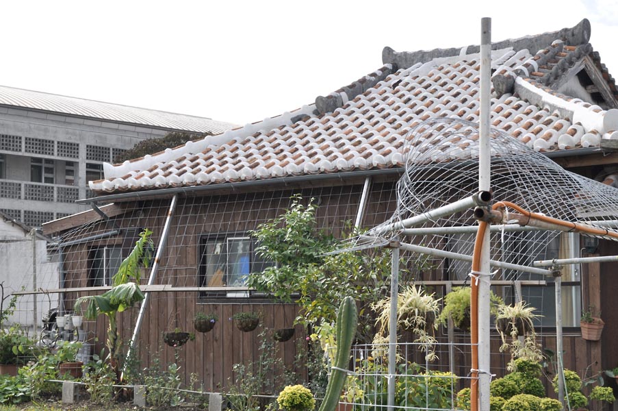 強風で瓦が飛ばないように漆喰でしっかり塗り固めてありますね。