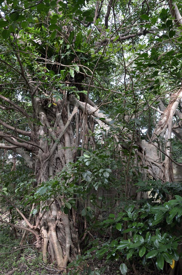 アコウに比べ、ガジュマルの方が気根が多く、細い根が多いので見分けられます。
