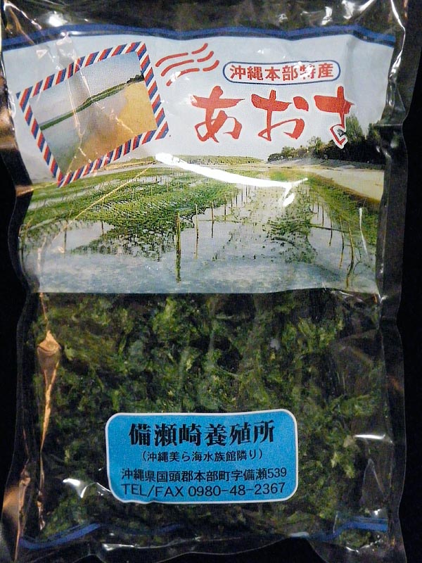 磯にたくさん生えているアナアオサではなく、ヒトエグサという海藻を干した物です。