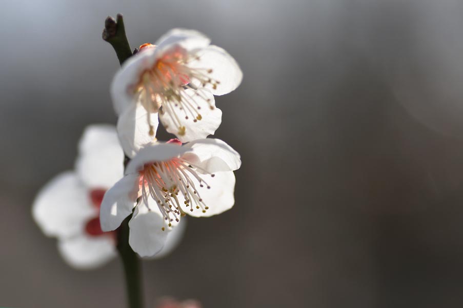 実際の花弁はほぼ純白で、がく片が赤いため桃色に見えます。