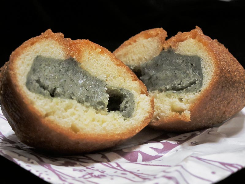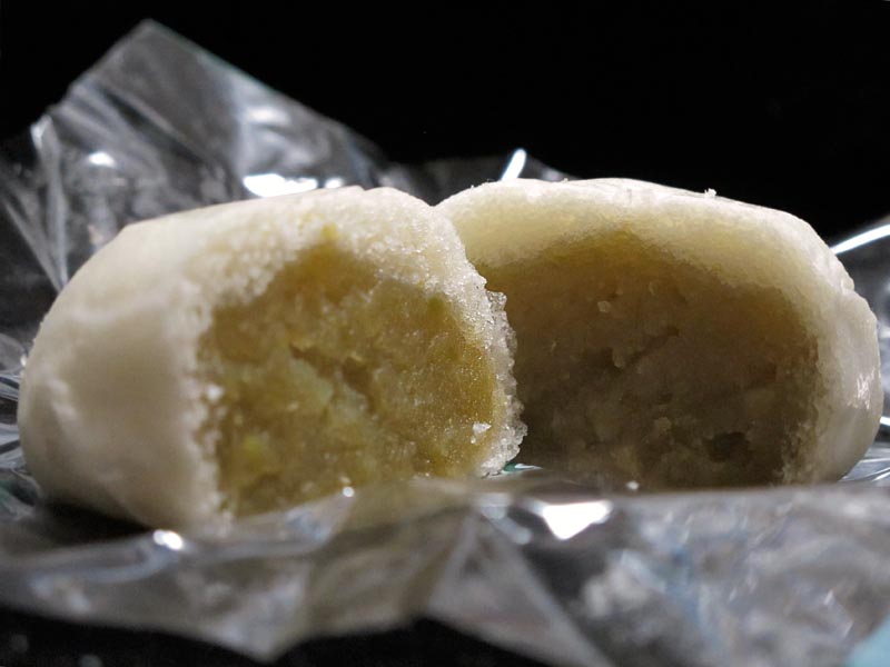 これはうぐいす餡にずんだが混ぜてある「ずんだ風」饅頭でした。