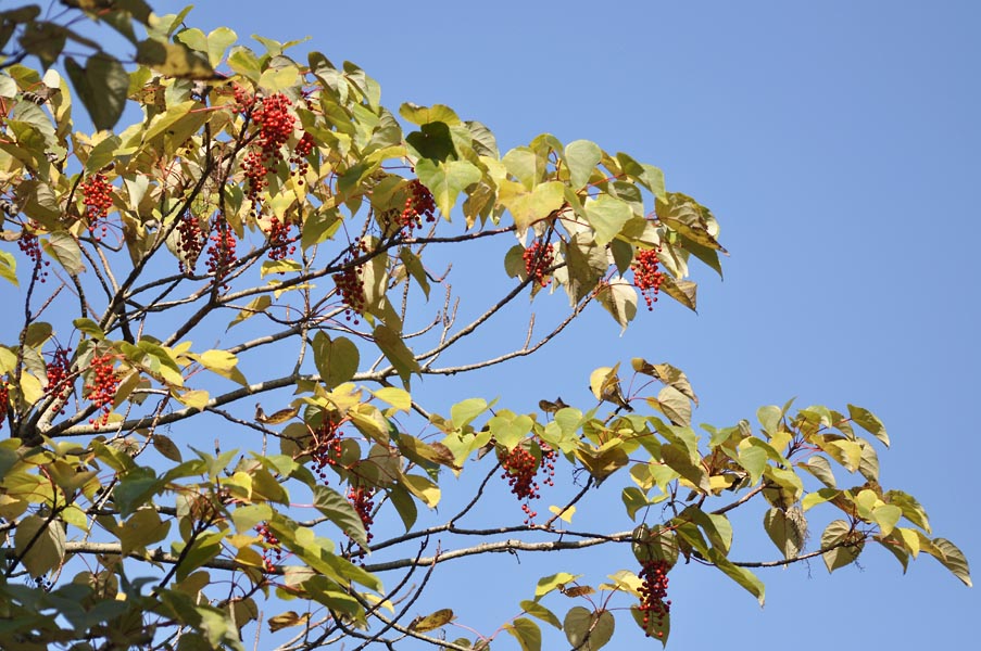 Idesia polycarpa ヤナギ科(APG、クロンキストではイイギリ科) 本州以南、台湾、中国、朝鮮半島、落葉高木