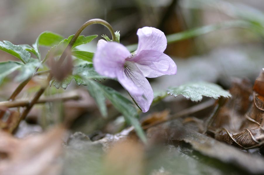 湖尻のキャンプ場とロープウェー乗り場の間は芦ノ湖ふれあい園地という雑木林で、マルバスミレがたくさん咲いていました。