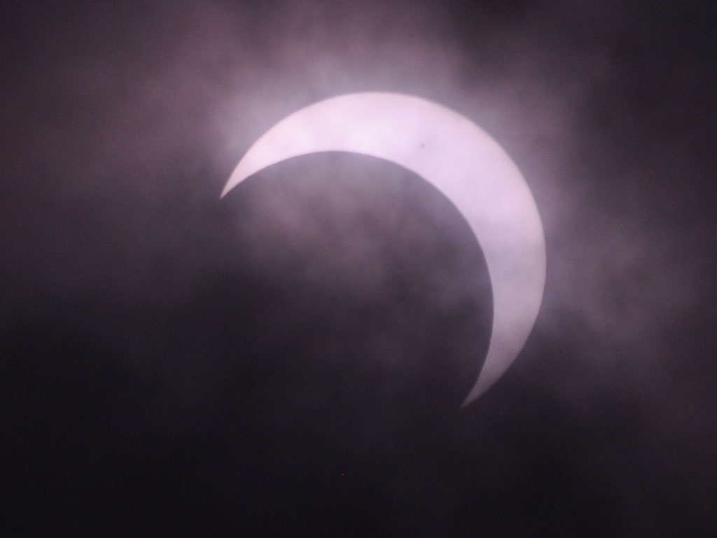 初めは日食グラスをかけていると見えなかったのですが、