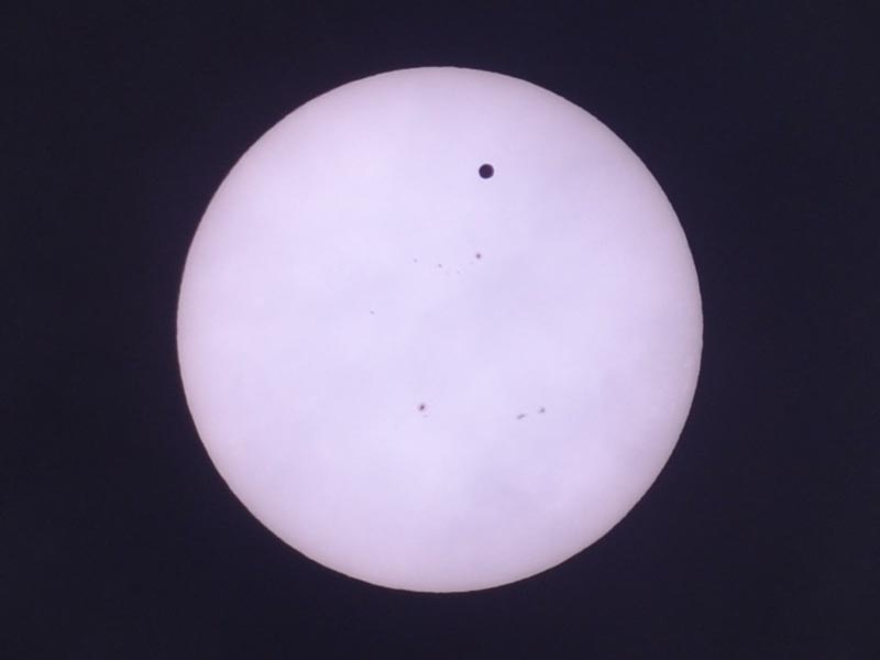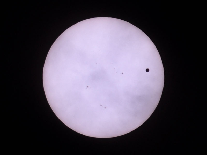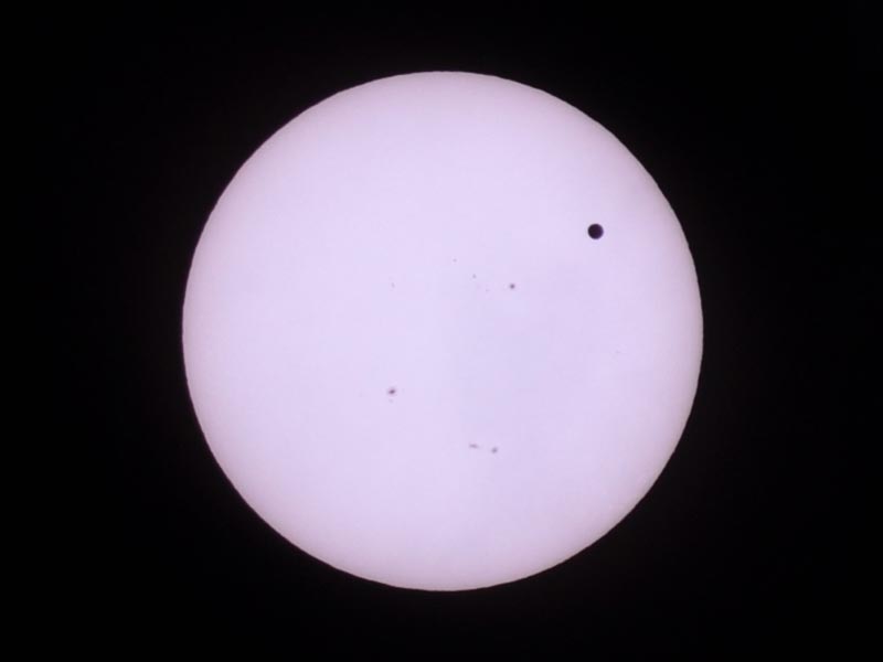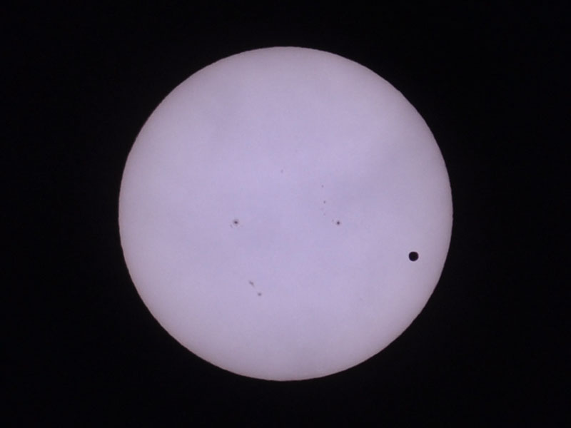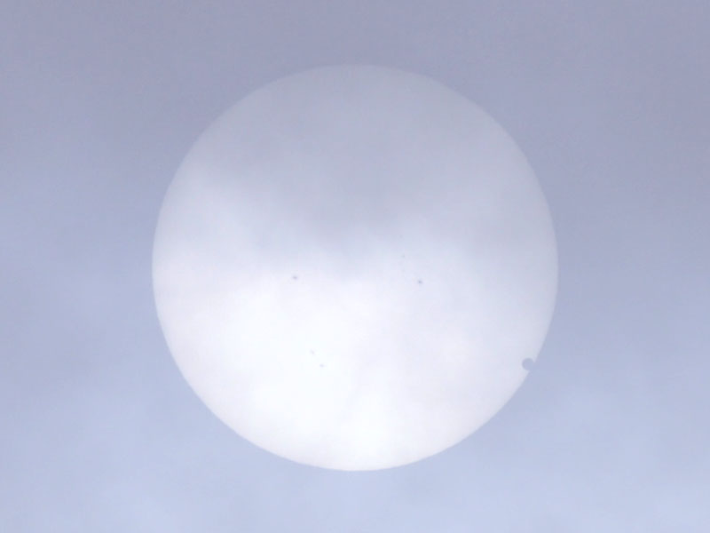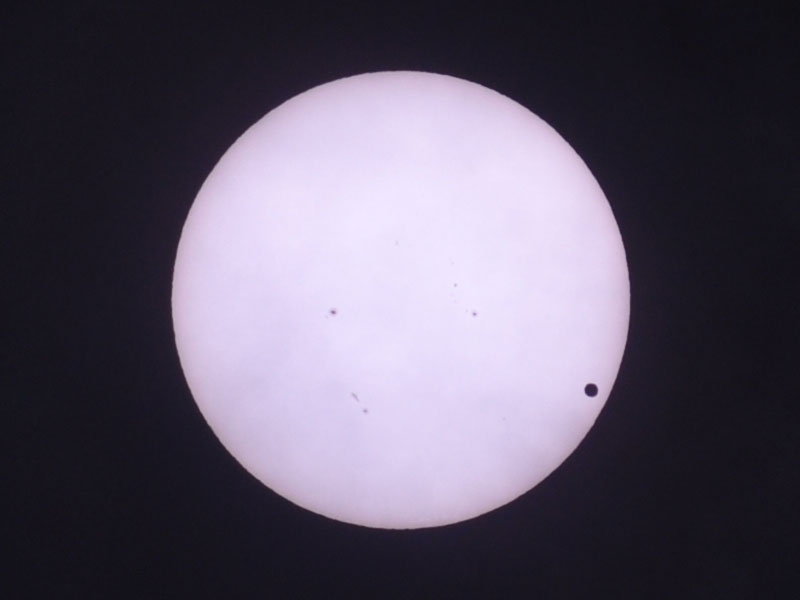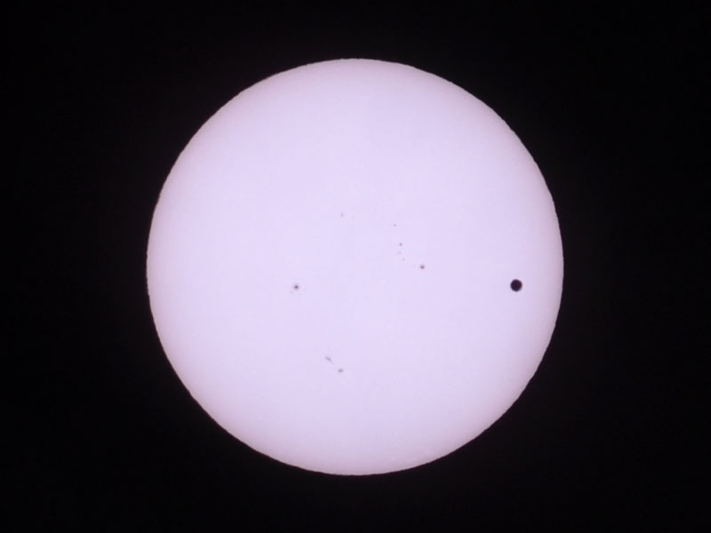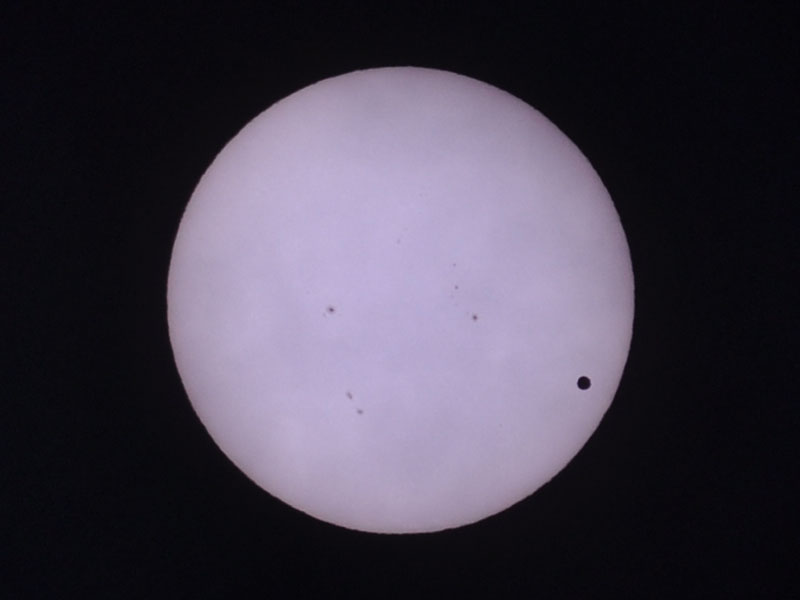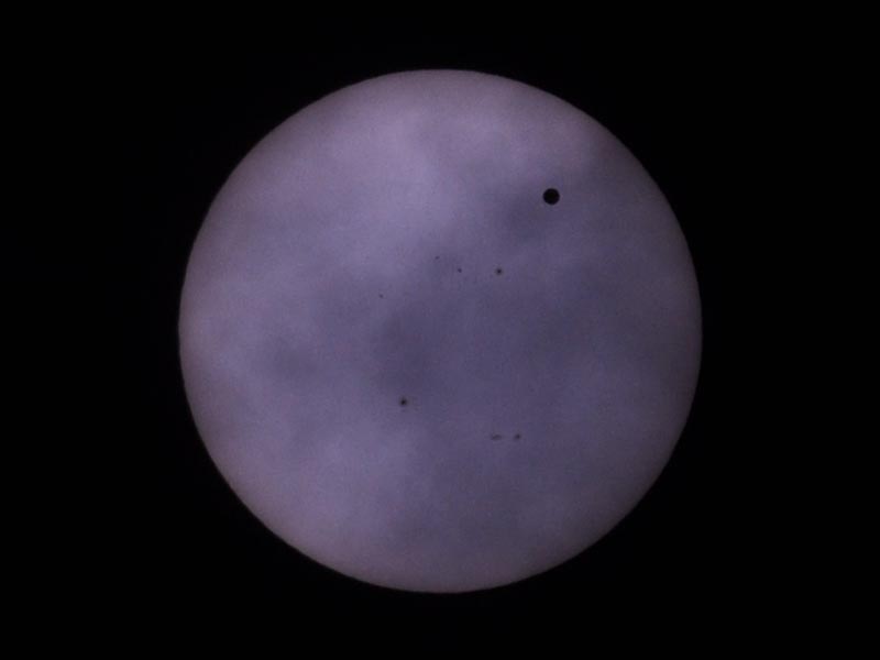 よく見ると、金星と一緒に黒点が移動しています。