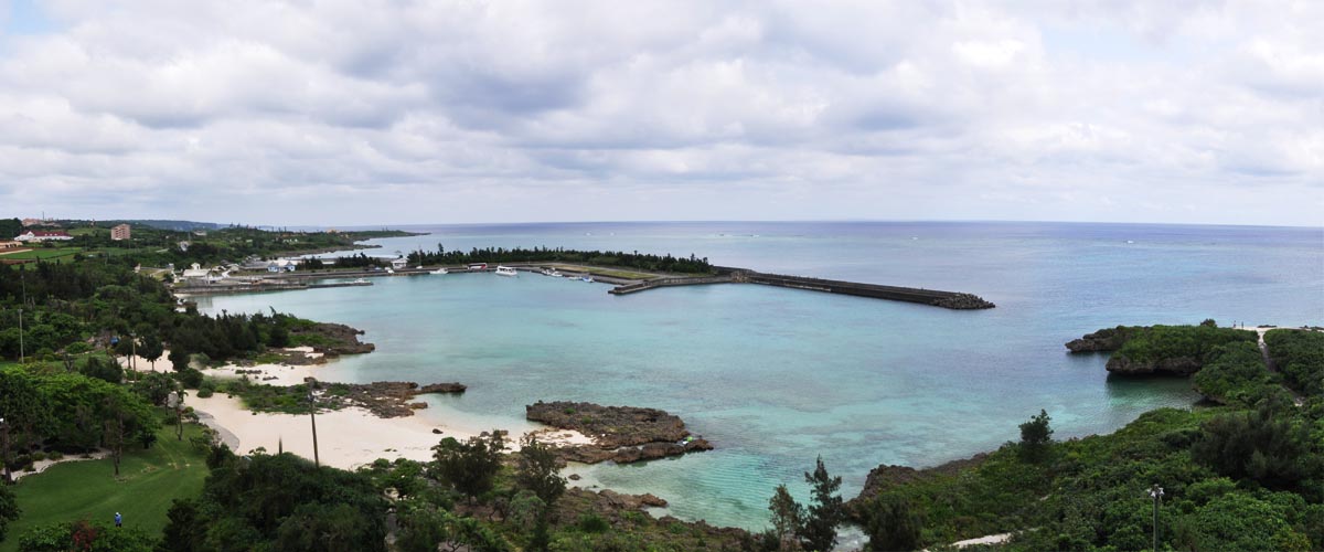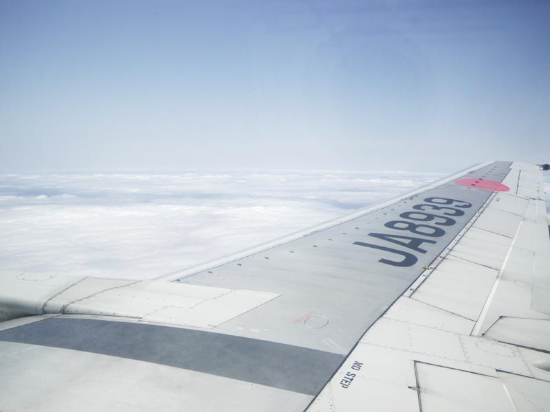 那覇で乗り継いで、宮古島上空は雲が広がっています。