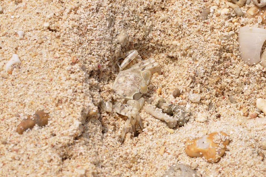 砂浜の至る所に穴が開いていますが、犯人はこいつかミナミスナガニです。
