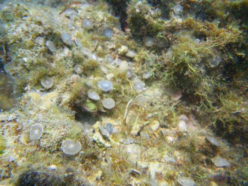 ホシズナと同じ有孔虫の仲間で、海底に仮足という糸状の物で張り付いて生活しています。