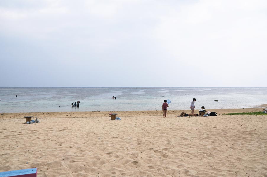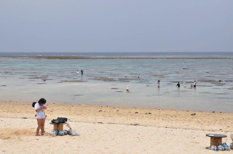 9時頃海に入ったときは胸ぐらいまで深さがありましたが、このときは膝よりも下ぐらいです。