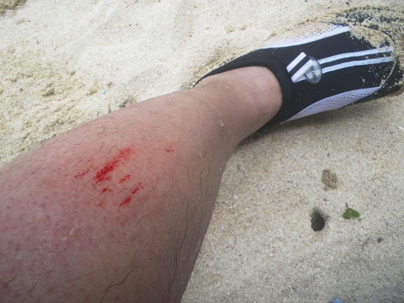 わ~らのおばさんに怪我を見つけられて、サンゴに毒があるので酢をかけた方がいいと勧められました。
