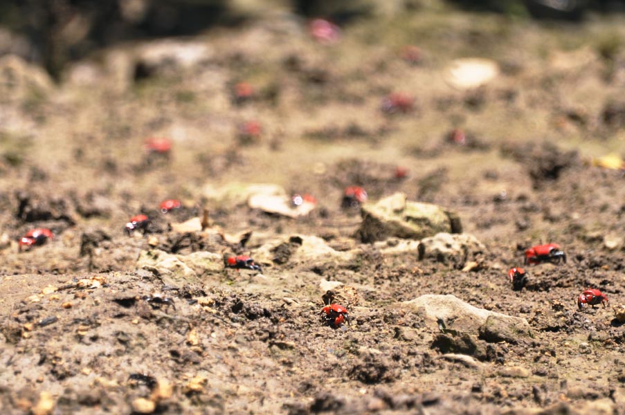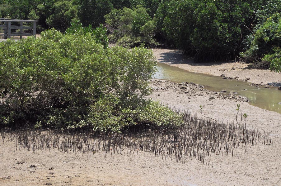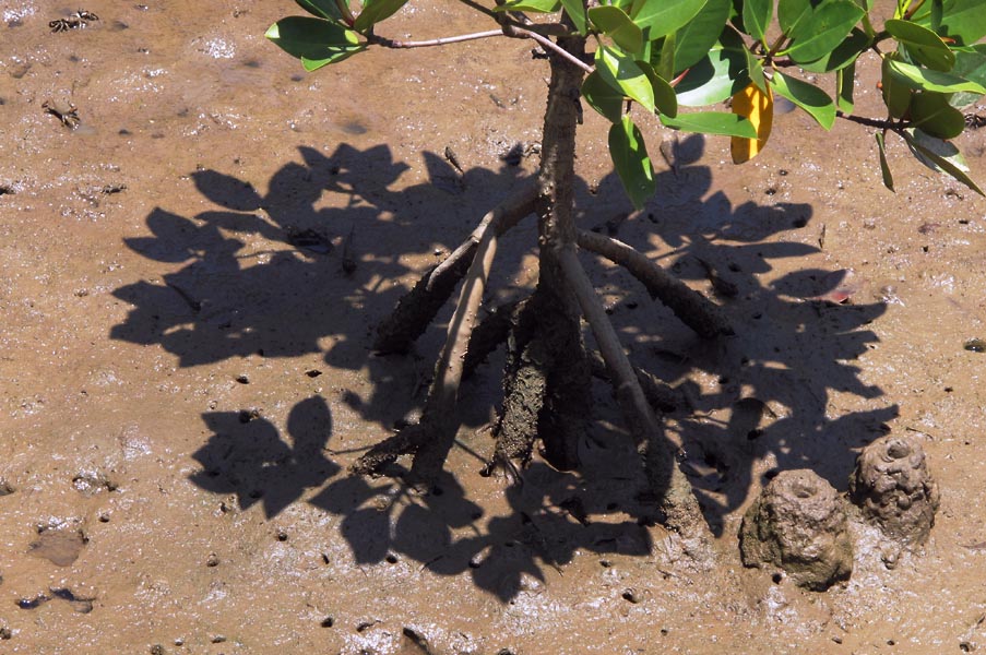 地元の人が林の中でノコギリガザミ(マングローブガニ)か何かを捕るために歩いているようなので関係あるのかなと思ったのですが、