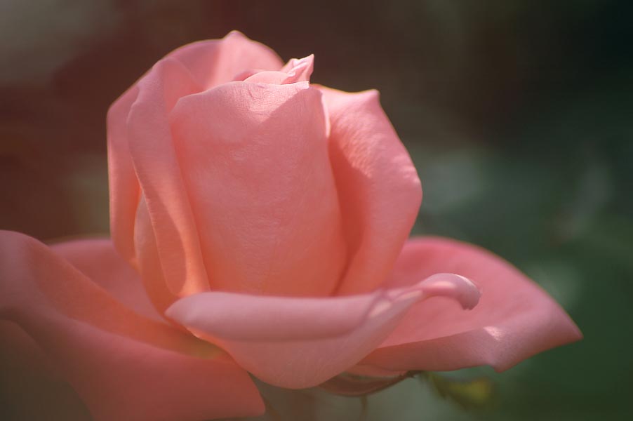 サーモンオレンジで弁数の少ない形のいいバラ。