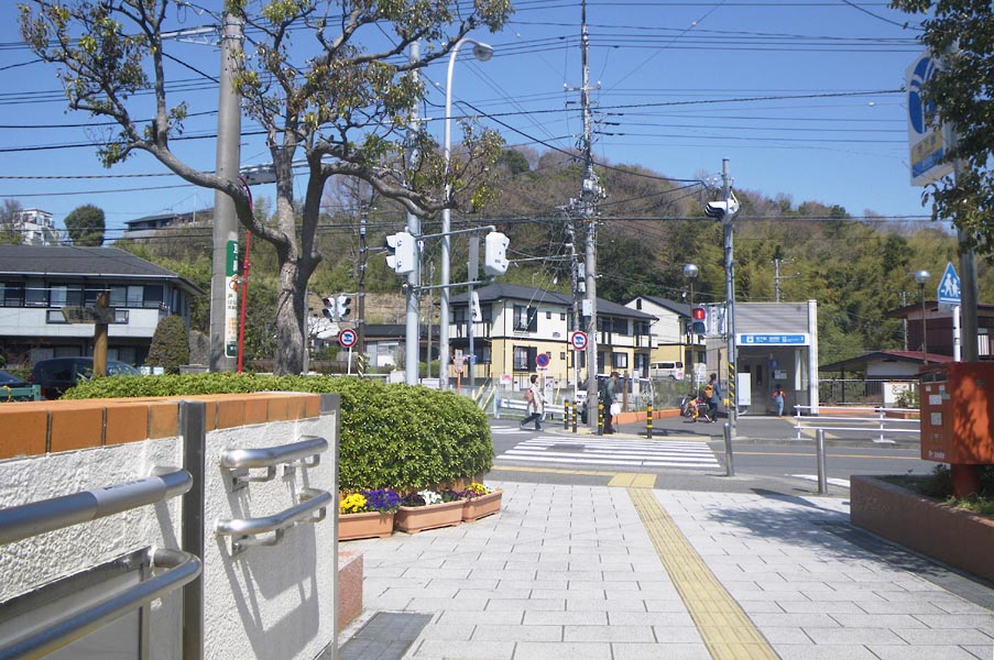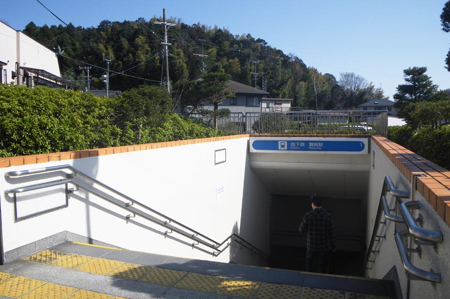 山に囲まれた中、唐突に口を開いている地下鉄舞岡駅。