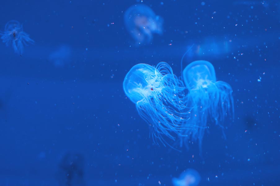 クラゲは遊泳力が弱いので、水流の管理が難しく、