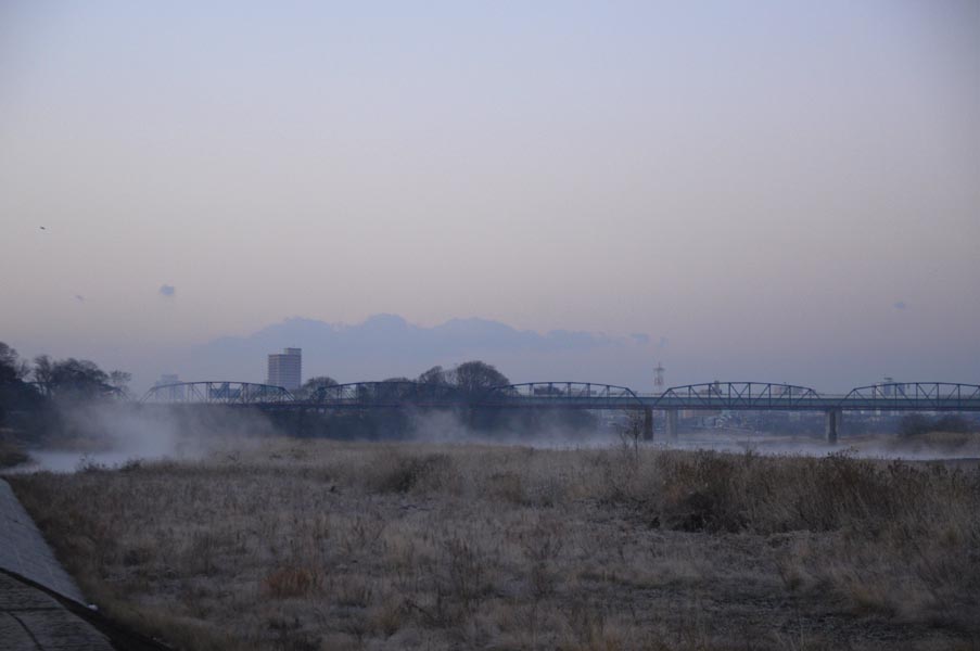 所々水温が高い場所があるらしく、もやが立っているのを見かけます。