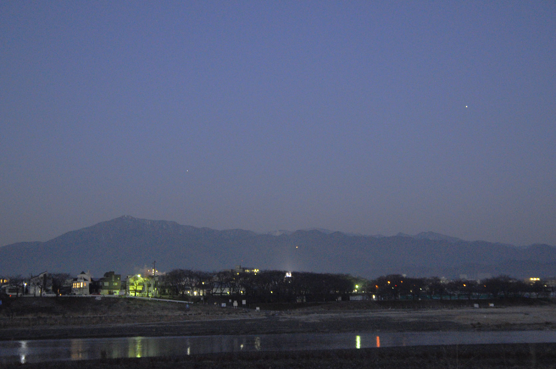 右の明るい星は木星。左下はこいぬ座プロキオン。