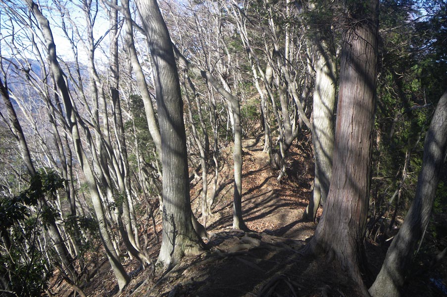 そこを過ぎてもしばらくは両端を切り落としたような狭い尾根を歩くことになります。