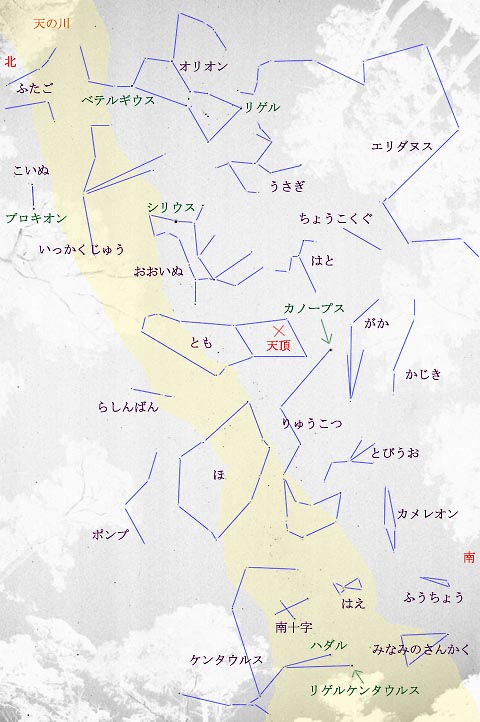 逆に、日本の北天でお馴染みの北斗七星やカシオペア座はこちらでは地平線ぎりぎりでほとんど見えません。