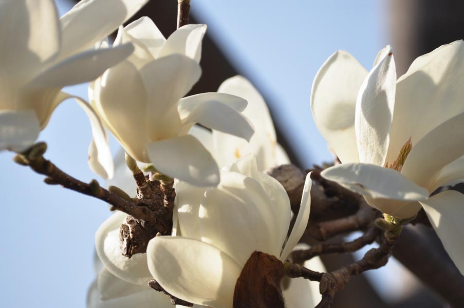 蕾の時に被っていた苞被片は、ハクモクレンの場合開花時に脱落してしまいますが、